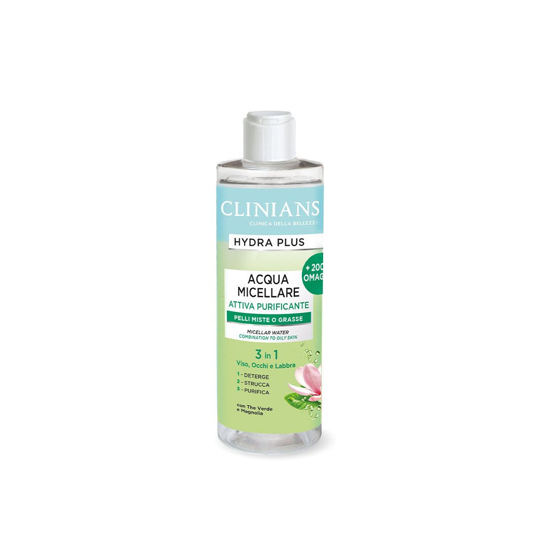 میسلار hydra plus مناسب پوست چرب کلینیانس|clinians hydra plus acqua micellare attiva purificante pelli miste o grasse 3in1