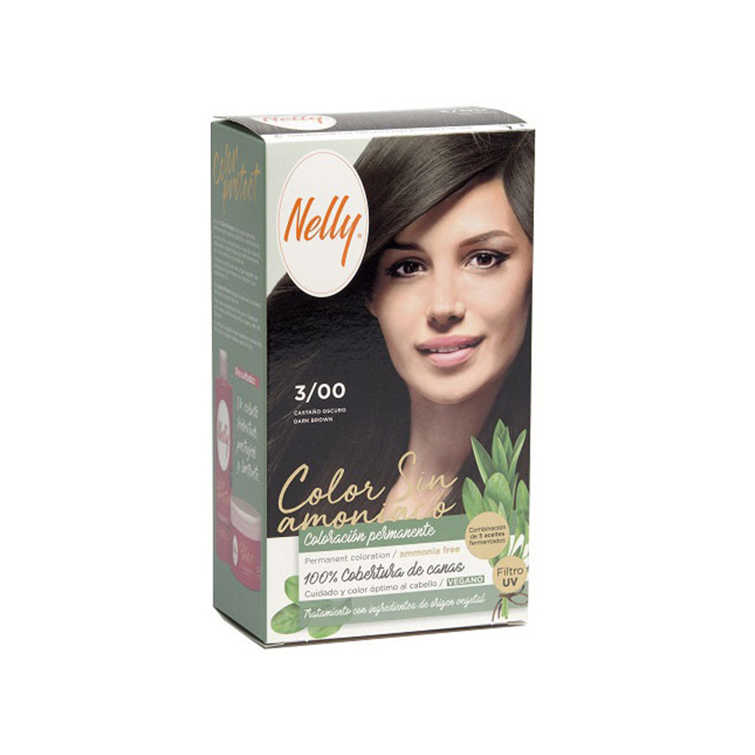 کیت رنگ مو بدون آمونیاک 3/00dark brown نلی |Nelly 3/00 dark brown permanent coloration ammonia free